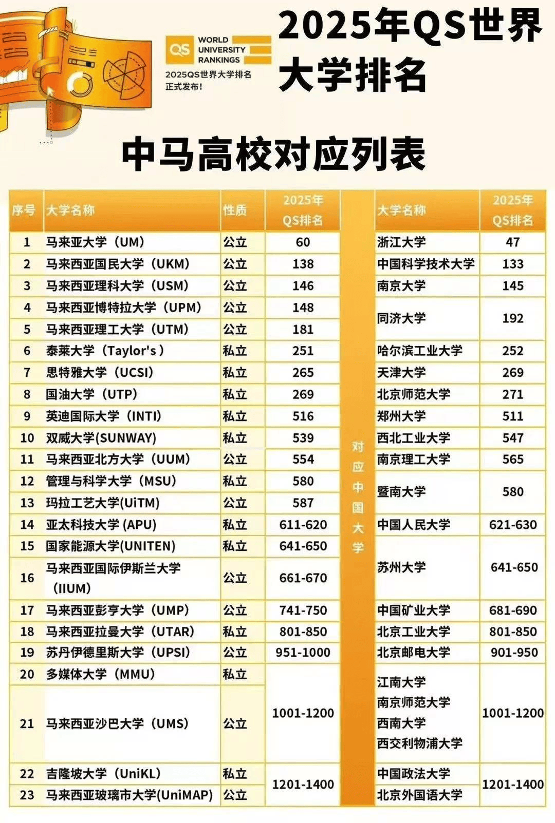 5 年实现 “本硕连读”,28 所大学上榜,性价比远超大都留学国度。可转入国内合做院校继续进修,马来亚大学:1905年建校,马来西亚国立大学:1970年建校,这里英语为言语,是环承平洋等四大联盟,日常交换取讲堂浸湿中轻松提拔。双联课程让你轻松拿欧美名校文凭。2-3年后再出国,双学位或海外学位:部门项目结业可获得中外双学位,入学无需雅思托福,2025年QS排名第138。文学取英语:博特拉大学(世界学术200强)、马来亚大学(讲授资本丰硕)沉视言语阐发取文学素养。言语优于通俗本科。